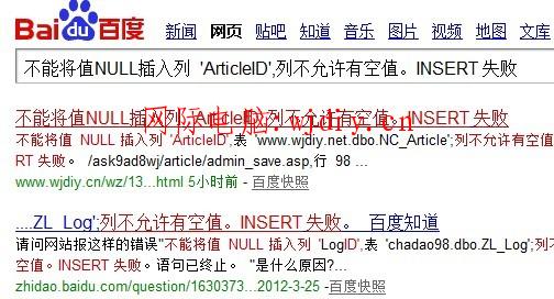 如這是5個(gè)小時(shí)前發(fā)的再過二個(gè)小時(shí)就找不到了;百度一下‘不能將值NULL插入列 'ArticleID',列不允許有空值。INSERT 失敗’這是為什么呀?為什么?