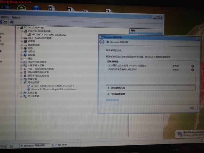 如下圖是我拍下的算機上沒有運行Windows無線服務!