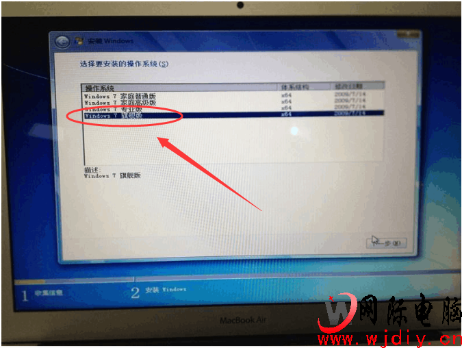 第八步:如圖所示、選擇window7 旗艦版’然后點擊下一步!如下圖: