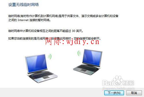 設置無線臨時網絡的界面,然后直接點擊"下一步"即可。
