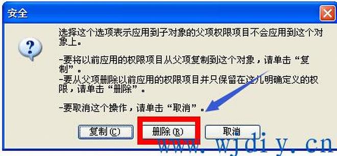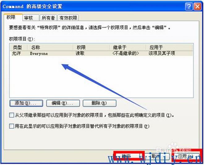 1.將“從父項(xiàng)繼承那些可以應(yīng)用到子對(duì)象的權(quán)限項(xiàng)目,包括那些再次明確定義的項(xiàng)目”前面的對(duì)號(hào)去掉,如圖1