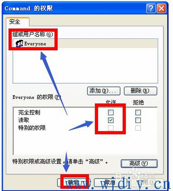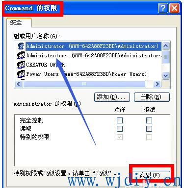 出現(xiàn)“Command的權(quán)限”界面,點(diǎn)擊“高級(jí)”