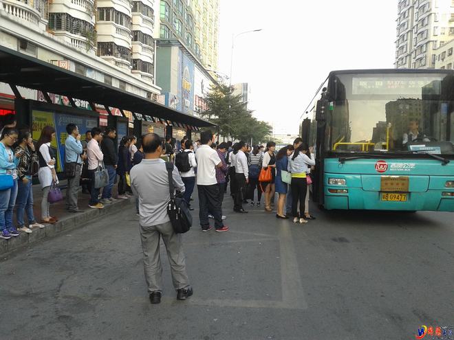 下面是潛龍花園公交站臺拍攝的:一次上不完;公交車上不了;等下班