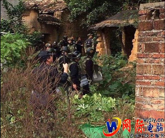12月5日中午12時許,臺山市公安局南門派出所教導員劉永超率隊前往朱洞村委會塘唇村抓捕販毒人員朱典華時,遭遇朱典華持刀拒捕,致劉永超傷重不治身亡。事發后,江門市副市長、公安局長藍華親自指揮對案發地點附近山頭進行了布控,并開展了圍捕。圖為緝兇現場。