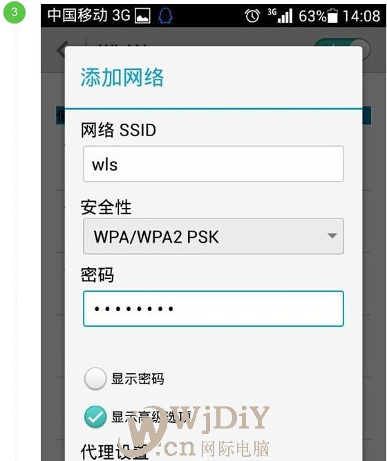 第三步:然后輸入網絡密碼(也就是無線路由器密碼),無線網絡高級選項:代理設置為無,ip設置為DHCP。