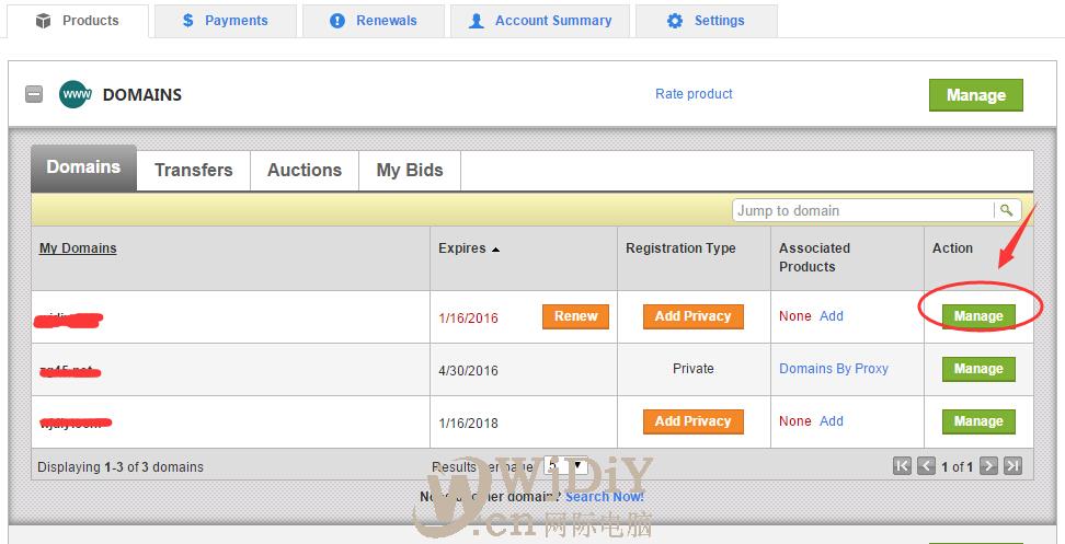 第三步、進入域名管理面板,點擊Locked后面的Manage解鎖,如下圖所示: