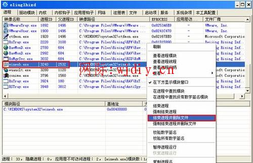 一、查找并結(jié)束系統(tǒng)中明顯的異常進(jìn)程winweb.exe,右鍵將其選中,并選擇“結(jié)束進(jìn)行并刪除文件”操作。
