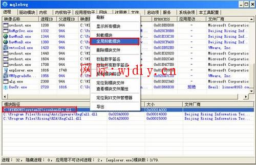 五、右鍵點(diǎn)擊explorer.exe下加載的iconhandle.dll,將其全局卸載。
