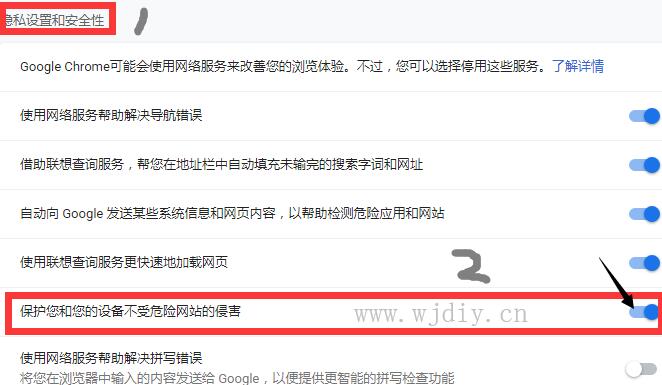 第三步;找到“隱私設置”,取消“保護您和您的設備不受危險網站的侵害”的勾選www.fun.tv 上的攻擊者可能會試圖騙您安裝有損瀏覽體驗的程序(例如更改您的主頁或在您訪問的網站上顯示額外的廣告)的程序。