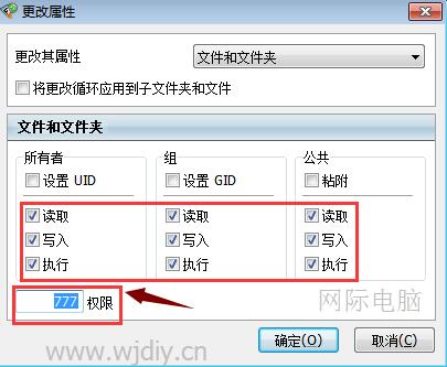第3步、接著按下圖進(jìn)行設(shè)置,最后點(diǎn)確定,這樣 ./templates 目錄以及下面的子目錄和文件都被設(shè)置為0777了。