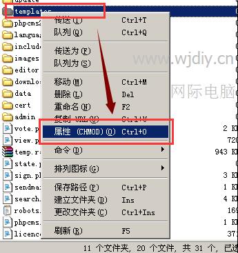 做網(wǎng)站用flashfxp修改文件權(quán)限圖文教程;程序上傳完畢之后需要將config.php、install.php和index.htm文件屬性改為 0777,將將data、templates兩個(gè)目錄和目錄下所有子目錄或者文件屬性改為 0777。