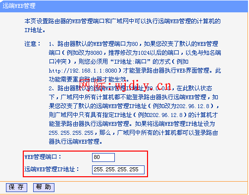 2、路由器默認的遠端WEB管理IP地址為0.0.0.0,在此默認狀態下,廣域網中所有計算機都不能登錄路由器執行遠端WEB管理,如果改變了默認的遠端WEB管理IP地址(例如改為202.96.12.8),則廣域網中只有具有指定IP地址(例如202.96.12.8)的計算機才能登錄路由器執行遠端WEB管理。如果將遠端WEB管理IP地址設為255.255.255.255,那么,廣域網中所有的計算機都可以登錄路由器執行遠端WEB管理。