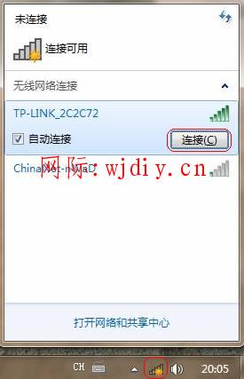 2、點擊電腦右下角網(wǎng)絡(luò)連接圖標(biāo),選擇無線路由器信號,點擊“連接”。如果沒有要連接的信號,請點擊右上角刷新按鈕。