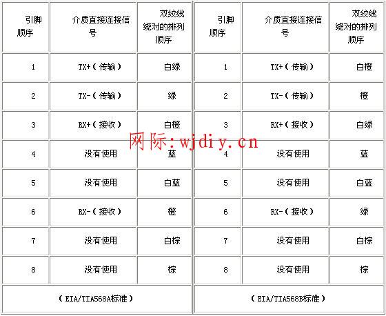 通常,我們會看到雙絞線的兩種常用的連接方法:直通線纜和交叉線纜。下面分別介紹這兩種線纜的引腳排序及適用場合。