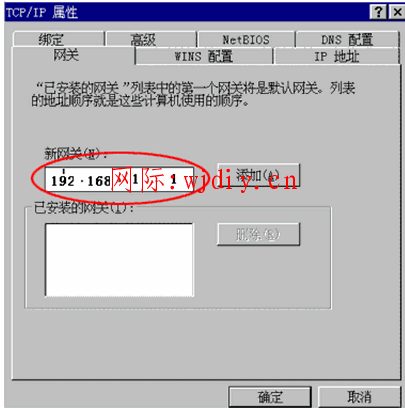 2.網關:在新網關里面填寫:192.168.1.1 點擊添加。