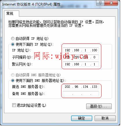 (也可將IP地址設置為自動獲取,DNS建議手動指定)