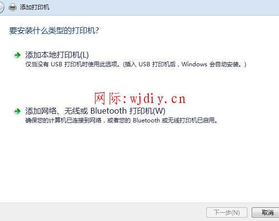 3.選擇添加網絡,無線或Bluetooth,會自動搜索網絡打印機,或者在打開的窗口里選擇添加本地打印機。