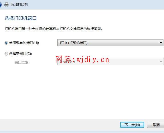 4.在打開的選擇打印機端口窗口選擇創建新窗口,端口類型:Local Port。