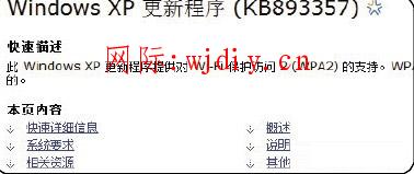在WIN XP下,需要安裝此補丁才能看到無線路由器設置的密碼功能,如果路由器設置了密碼,且你的電腦沒有升級到 XP SP3的系統,那么就需要安裝KB893357補丁。