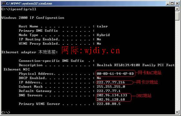 1、查看電腦的IP地址.、DNS地址和網卡的物理地址(MAC地址)