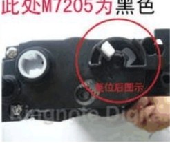 6、解鎖:將粉盒右側呈60度扇形的清零復位手柄從右側用平口改錐撬起搬到左側頂部。(關鍵一步)