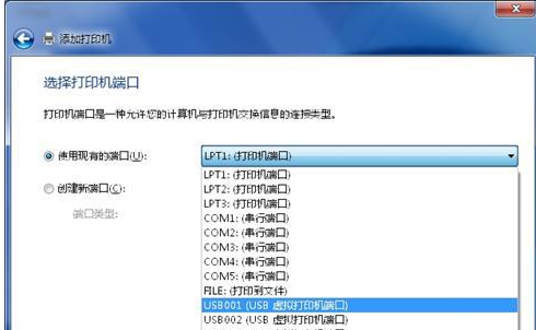 第三步、如果使用 USB 線纜連接,請選擇“USB00X”,如果使用并口線纜連接,請選擇“LPT1”;