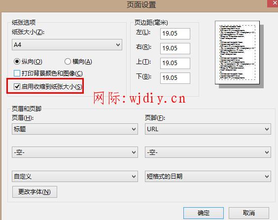 去掉“啟用收縮到紙張大小”前面的勾,確定即可。