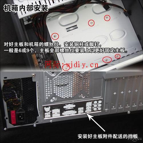 安裝主板有一定技巧,首先要對好主板和機箱的螺絲位,然后在機箱相應的螺絲位上安裝銅柱或腳釘,一般是6或9個,主板全部螺絲位要裝上以更好固定主板。然后安裝主板配件附送的擋板(要先把機箱標配的拆掉,盡管暴力拆吧,以后不會用到的)。