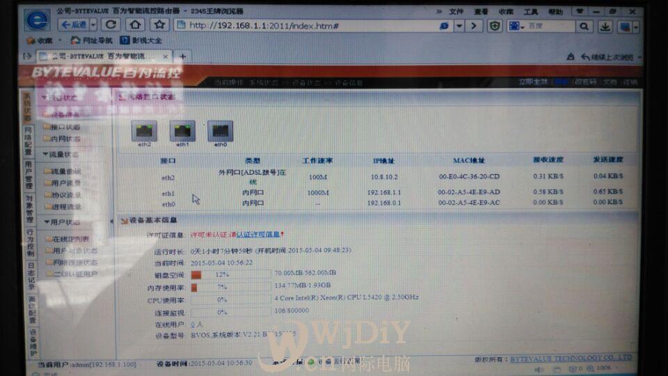 百為流控就說(shuō)明安裝成功了。如果你是客戶的話對(duì)連即可,如果你不清楚自己插入的是哪個(gè)網(wǎng)口可以熱拔插后可以看到例如:eth1拔掉后會(huì)出現(xiàn)eth1 link is down就說(shuō)明你拔掉了你插入網(wǎng)口的那根線已拔出,那么你的IP就是192.168.1.1了。