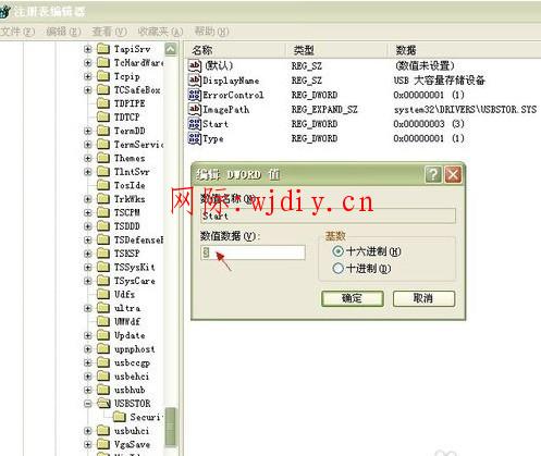 打開注冊表編輯器,依次展開如下分支[HKEY_LOCAL_MACHINE/SYSTEM/CurrentCntrolSet/Services/USBSTOR],在右側的窗格中找到名為“Start”的DWORD值,雙擊,在彈出的編輯對話框中將其數值數據修改為十六位進制數值“4”。點“確定”按鈕并關閉注冊表編輯器,重新啟動計算機,使設置生效。重啟后,當有人將USB存儲設備連接到計算機時,雖然USB設備上的指示燈在正常閃爍,但在資源管理器當中就是無法找到其盤符,因此也就無法使用USB設備了