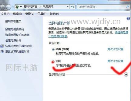 4.在電源選項的節能選項中,點擊后面的更改計劃設置