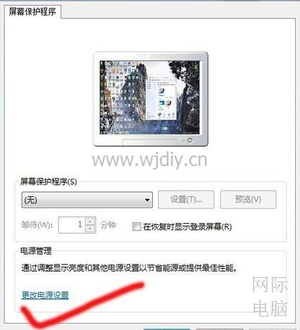 3.在屏幕保護程序窗口中點擊更改電源設置