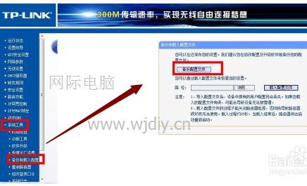 下面教大家備份路由器設置,這樣下次重置路由器后就不用再次重新設置了!進入“系統工具”--“備份和載入配置”頁面選擇備份配置文件!將配置文件存放在可靠的路徑以備下次使用!