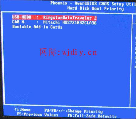 上圖4-2 :當我們首先在圖3的硬盤驅動器“Hard Disk Drives”中選擇U盤為第一啟動設備“1st Drive”以后,啟動優先級設備選擇(Boot Device Priority)里面才會顯示U盤,然后我們優先選擇U盤作為第一啟動設備(1st Boot Device)