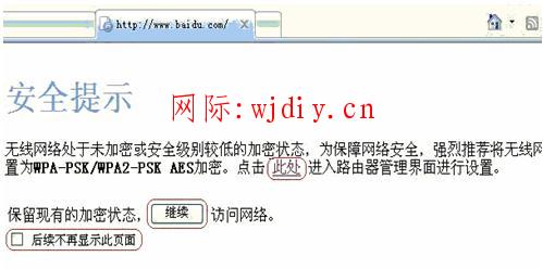 2. 如果當前無線設(shè)置加密類型為非WPA-PSK/WPA2-PSK AES 加密,您打開網(wǎng)頁時會彈出如下界面。