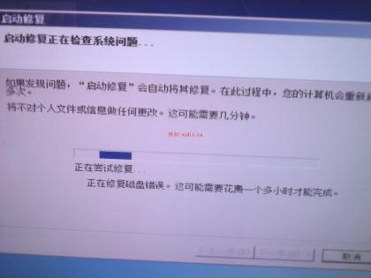 今天開機 好久沒打開!后來一下!桌面上出現(xiàn)“啟動修復(fù)正在檢查系統(tǒng)問題” 如圖: 開機提示修復(fù)系統(tǒng) 花了1小時!后來自己又可以了!這是w7系