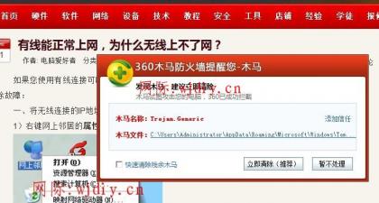 發現木馬,建議立即清除,這樣的提示要不要處理?