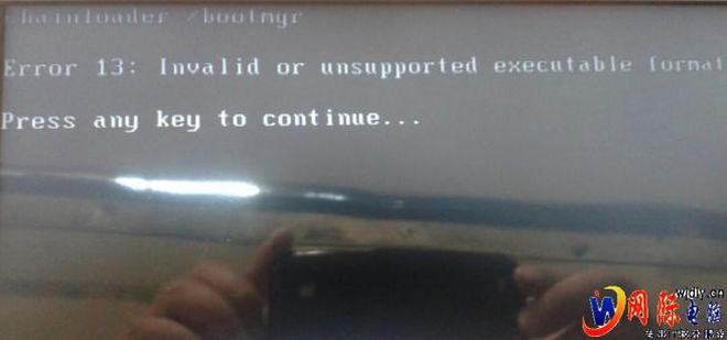 Chainloader/bootmgr error 13: Invalid or unsupported executable format Press any key to continu