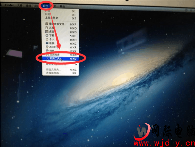 今天網際電腦教大家MacBook裝雙系統(tǒng)一步一步教程:第一步:mac電腦先開機、把WIN7 64位的盤放進去!光驅入口在電腦的右手側面!第二步:打開屏幕的左上角‘前往’里面的‘...