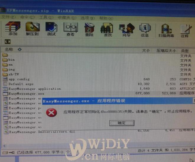 打開EFMessenger.zip應用程序正常初始化 0xc0000135 失敗 怎么解決?一般是系統文件損壞造成的,修復系統 這是ERP系統;公司說有的電腦可以安