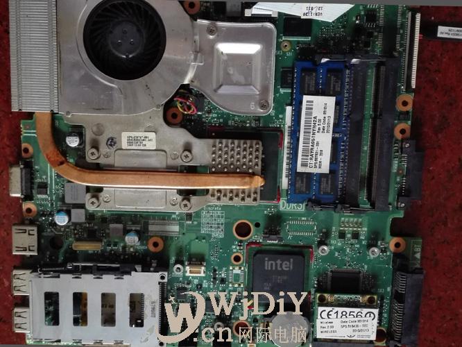 HP筆記本電腦4411S上電不顯,硬盤燈狂閃,折機光板上CPU 內存開機電流在0.02-0.05左右,硬盤閃狂閃,折掉內存在0.05不動;也就是加不上電;拆下板子如下圖: