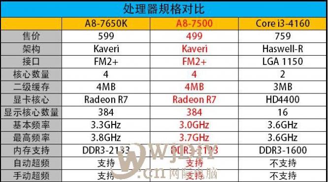 A8-7500 APU與A8-7650K的性能與i3 4160比