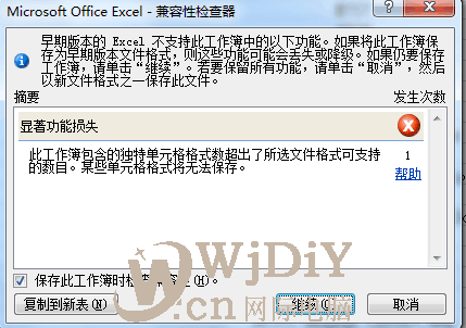 此工作簿包含的獨(dú)特單元格格式,昨天一客戶說自己電腦的Excel表顯示此工作薄包括獨(dú)特的單元格式超出了所選文件所支持的數(shù)目某些單元格式將無法保存!如下圖: &n
