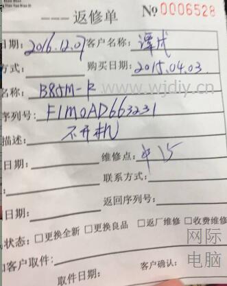 華碩主板B85M-K返修單;網(wǎng)際電腦一個客戶用華碩B85M-K主板壞了;用了一年多一點就是壞了不能直接換給客戶;只好返修到華碩售后處理了;是2016年12月07號送過去的;今天收到好了的信息