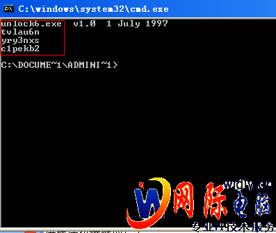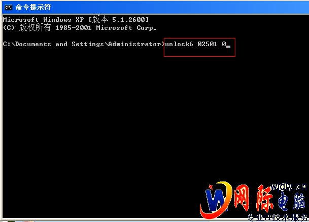 2;在另一臺 xp的電腦上運行附件-命令提示符 。鍵入“unlock6 xxxxxx 0” x代表得到的5位溢出碼