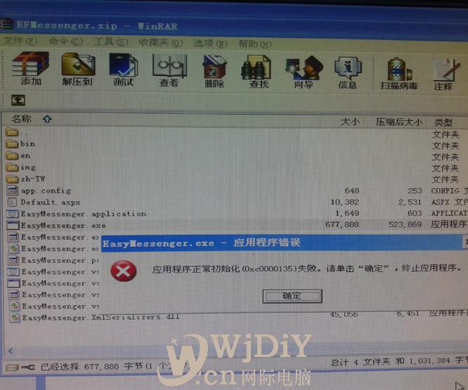 打開EFMessenger.zip應(yīng)用程序正常初始化 0xc0000135 失敗 怎么解決?一般是系統(tǒng)文件損壞造成的,修復(fù)系統(tǒng)