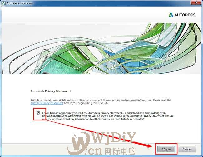 勾選“我同意使用在autodesk隱私聲明中所描述的個(gè)人信息”,然后點(diǎn)擊我同意(I Agree) 第十一步:激活CAD2015 64位英文版