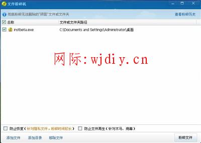 要想徹底的刪除某個文件,可以使用“文件粉碎機”工具,現在很多的安全工具都帶有這樣的功能(如360安全衛士),在“文件粉碎機”中,添加進需要刪除的文件或文件夾,最后點擊“粉碎文件”即可(如圖2)。文件粉碎機就會在刪除文件的同時,在文件留下的“空位子”上多次寫入其它的數據,將原文件的數據徹底覆蓋,就能避免這些文件被恢復了。