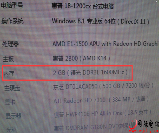 DOD公司配備的一體電腦,卡得不行,還裝的是W8系統(tǒng);打算掏錢加個內(nèi)存條。用360查了一下,有兩個插槽。網(wǎng)上說是臺式機插槽,但有買家曬單說是筆記本插槽;求用過的朋友給個確切答案啊;網(wǎng)際電腦來告訴你:拍攝了硬件測試如下圖: