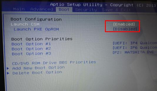 如果CSM無法設置,建議您首先設置Secure Boot Control之后保存設置退出bios,然后重新進入設置CSM。然后您插入U盤或者放入光盤之后開機按ESC選擇啟動項